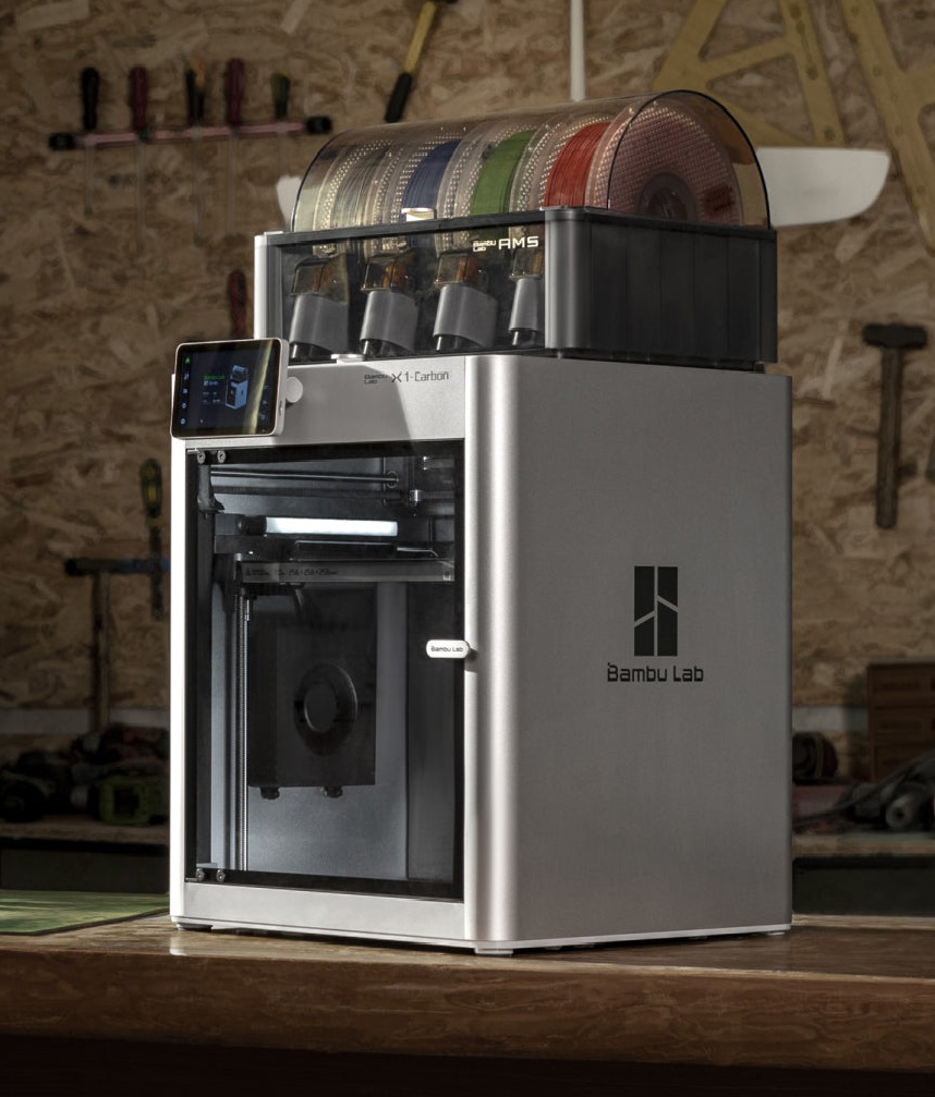 Imprimante 3D Bambu Lab X1 Carbon : Volume d'impression 256 x 256 x 256 1 tête d'impression 300°C Filament 1.75 mm Plateau chauffant 125°C Vitesse : 500 mm/s