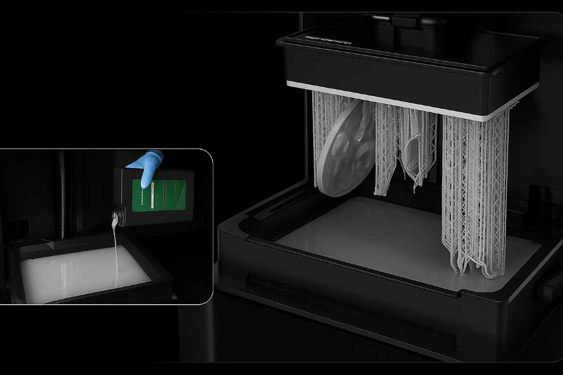 Grâce à sa faible viscosité et à sa polymérisation rapide sous UV, elle assure un durcissement homogène, un gain de temps significatif et une impression fluide. Son excellente adhérence réduit les échecs d’impression et limite le gaspillage de matière, pour une utilisation plus économique et fiable.