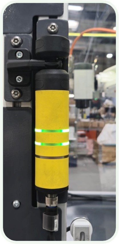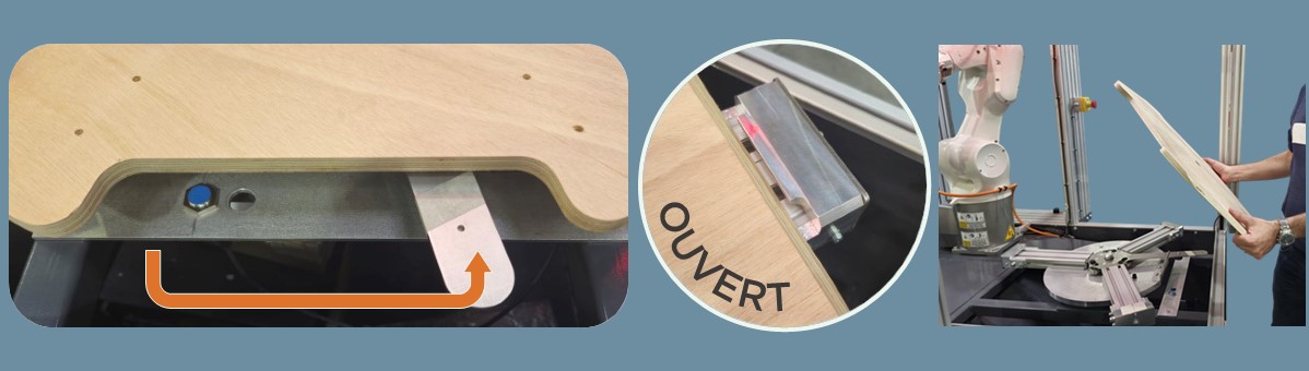 Un capteur détecte la position du système pour empêcher le lancement d'un travail si le plateau n'est pas verrouillé.